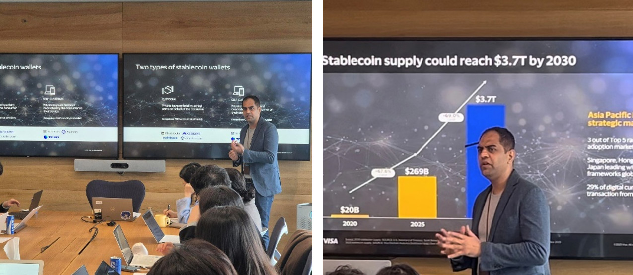 비자 미디어 스터디 세션에 강연자로 참석한 니신트 상하비 총괄은 스테이블코인이 기존 금융 시스템을 대체하는 것이 아니라 실제 결제·정산 인프라로 전환되고 있는 흐름을 설명했습니다.