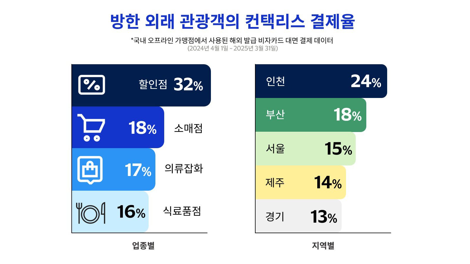 글로벌 결제 기술 기업 비자(Visa)가 2024년 4월부터 2025년 3월 사이, 국내 오프라인 가맹점에서 발생한 해외 발급 개인 비자카드의 대면 결제 데이터를 분석해 방한 외래 관광객의 소비 트렌드를 발표했다.